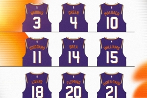 体育资讯8月10日讯 今日太阳官方公布了队内一些球员的球衣号码。