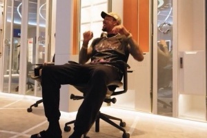 视频中,科林斯坐在哈登和小卡更衣柜的旁边显得非常兴奋,他说道:“这里都是大人物。”