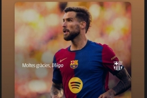 体育资讯8月10日讯 巴萨中卫伊尼戈-马丁内斯自由身离队,加盟利雅得胜利,巴萨门将特尔施特根更新社媒动态,与伊尼戈告别。