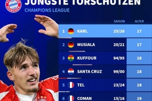 创造两项纪录!伦纳特-卡尔是欧冠进球最年轻拜仁球员+德国球员
