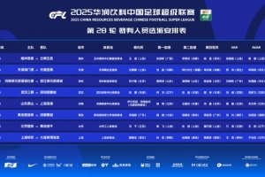 中超第28轮裁判:坦格舍夫执法泰山vs海港,马宁执法国安vs海牛