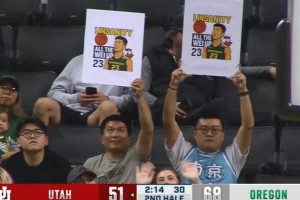 体育资讯10月25日讯 NCAA季前赛,林葳所在的俄勒冈大学对阵犹他大学。