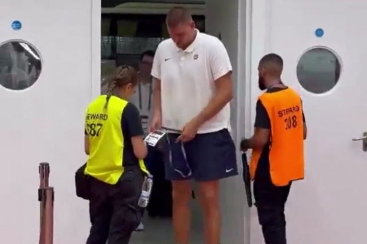 但是约基奇正常到球馆观战,入场时掏出证件检验。