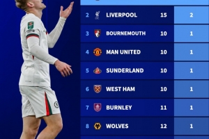 体育资讯10月30日讯 英超已赛9轮,目前阿森纳以4分优势领跑积分榜。据德转数据统计,截止目前,英超球队在各项赛事红牌榜中,切尔西以5张红牌遥遥领先,利物浦2红排名第2。
