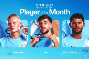 曼城10月最佳球员候选名单:哈兰德、尼科、努内斯入围