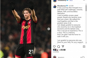 扎巴尔尼告别伯恩茅斯:感谢支持过我的每一个人,祝球队取得成功