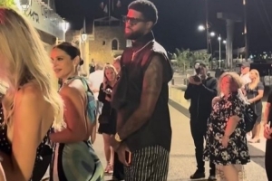 体育资讯8月12日讯 近日网友拍到乔治在夜店门口排队,还戴着护膝。身前站着的是他的妻子Daniela。