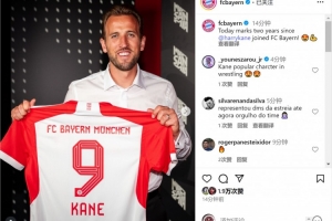 2023年8月12日,凯恩以9500万欧转会费从热刺加盟拜仁。拜仁官方社媒晒出凯恩加盟时的照片,回顾那个特别的时刻。