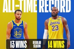 詹姆斯:常规赛14胜、季后赛11胜、附加赛1胜