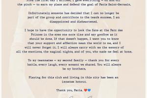 从我抵达的第一天起,我就付出了一切——在场上和场下——只为赢得自己的位置,守护巴黎圣日耳曼的球门。