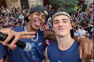 巴萨中场加维迎来21岁生日,亚马尔社媒晒出与加维在冠军游行中的合照,配文:“生日快乐,我的挚友!我爱你,兄弟!”