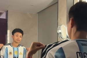 张琳艳在社媒写道:“上身蓝白战袍,期待在美加墨见到梅西的身影。”