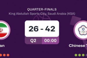 体育资讯8月14日讯 男篮亚洲杯1/4决赛,中国台北半场42-26领先伊朗。