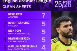 拉亚7场零封是本赛季英超门将最多,杜布拉夫卡46次扑救最多