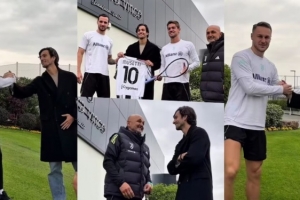 都体:网球运动员穆塞蒂探班尤文训练基地,他是尤文的铁杆球迷