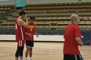 在备战八强赛前的训练中李昂教练单独指导了王俊杰,