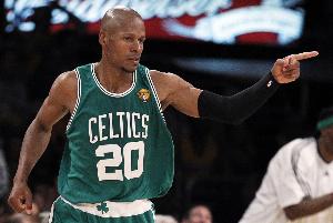 体育资讯11月17日讯 雷阿伦昨天在凯尔特人主场观看了他大学母校康涅狄格大学对阵杨百翰大学的NCAA比赛。