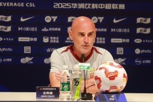 2025华润饮料中超联赛第21轮上海海港vs河南俱乐部酒祖杜康赛前发布会,主教练穆斯卡特介绍备战情况:“我们的对手近期状态极佳,展现出了极强的竞争力。过去这段时间,球队通过进行会议达成共识,大家需要在明天的比赛中继续保持像上轮比赛一样的精神面貌、强度和心态,期待球队拿出精彩的表现。”