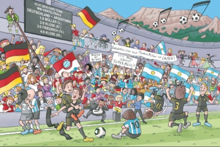 《托马斯-穆勒:我的隐藏物品书》于8月初出版,共16页,收录了穆勒职业生涯中8个精彩时刻的图画版本,读者在阅读时可以在图画中寻找数量极多的信息和彩蛋。这本书旨在探索、纪念,以及最重要的——带来欢笑。