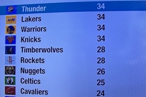 新赛季全美直播场次:湖人勇士雷霆尼克斯34场联盟最多 火狼28场