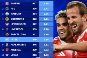 体育资讯11月20日讯 德国转会市场统计了近5年球队在五大联赛中的场均进球数量,并列出榜单,拜仁2.86球居首,巴黎、曼城二三位。