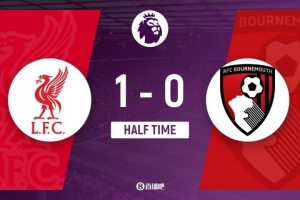 体育资讯8月16日讯 25-26赛季英超揭幕战,卫冕冠军利物浦坐镇主场安菲尔德迎战伯恩茅斯。上半场,萨拉赫、范迪克造险,埃基蒂克连场破门并致敬若塔。半场战罢,利物浦1-0伯恩茅斯。