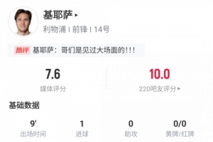 体育资讯8月16日讯 基耶萨在本场比赛中替补登场,并完成绝杀。