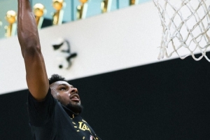 体育资讯8月16日讯 今日,湖人官推晒出一组布朗尼-詹姆斯和杰克-拉拉维亚的训练照。