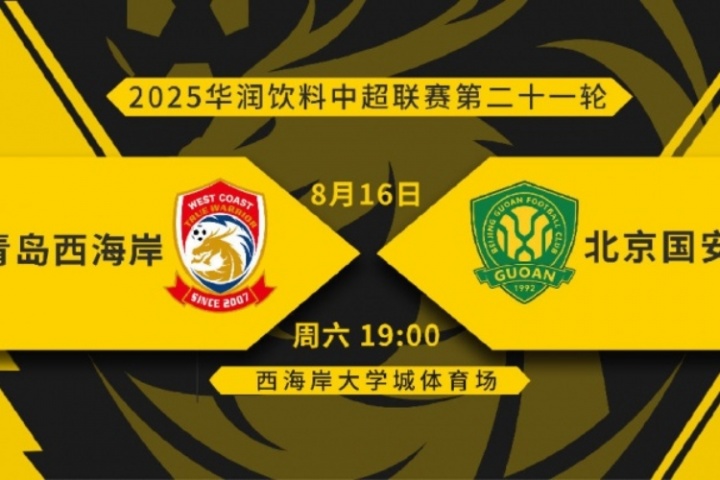 目前中超积分榜上,青岛西海岸6胜9平5负积27分,位列第10;北京国安12胜6平2负积42分,位列第4。双方本赛季此前有过两次交手,联赛中北京国安1-0击败青岛西海岸,足协杯1/4决赛,双方120分钟战成2-2平,点球大战国安4-2获胜。