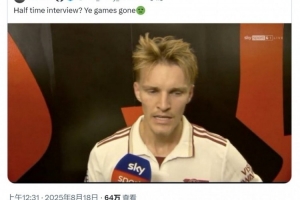 上一篇: 厄德高中场休息还要被采访引不满,球迷:荒谬!让球员去专注比赛
